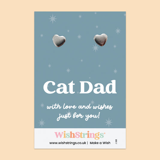 WishStrings ‘All You Need is Love and a Cat’ Heart Stud Earrings on Gift Card | Versatile Thoughtful Gift | Hypoallergenic & Nickel-Free | Handmade in the UK