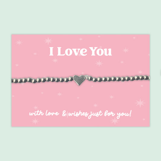 Little Wishes® “I Love You” Pink Seed Bead Bracelet | Enamel Heart Charm | Sentimental Gift for Partner, Daughter or Friend | Presented on Pink Gift Card
