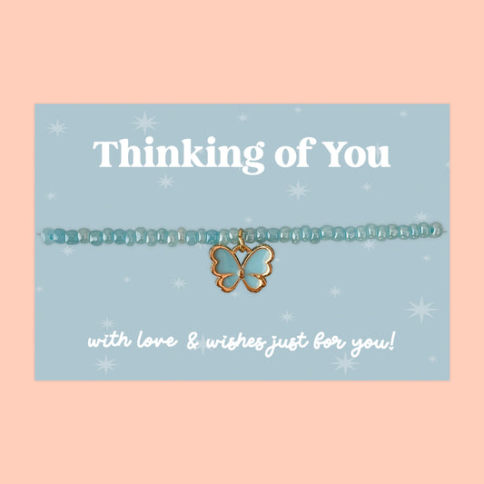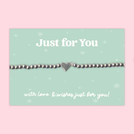 Little Wishes® “Just for You” Blue Seed Bead Bracelet | Enamel Heart Charm | Thoughtful Gift for Friend, Loved One or Teen | Presented on Mint Green Gift Card