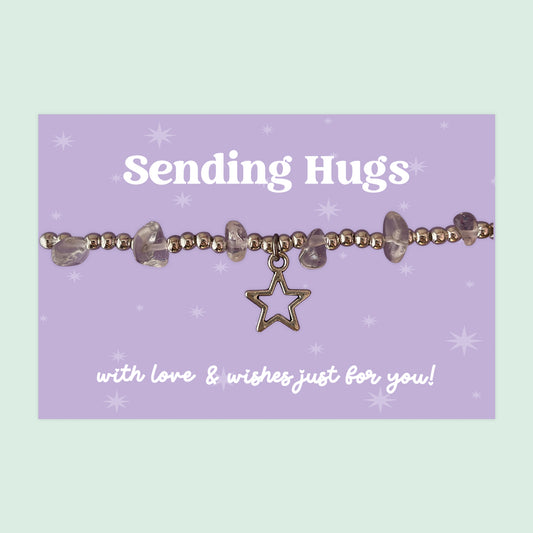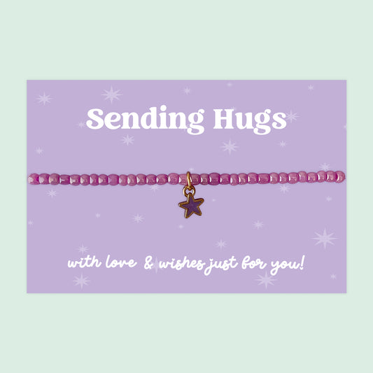 Little Wishes® “Sending Hugs” Purple Seed Bead Bracelet | Enamel Star Charm | Comfort Gift for Tough Times, Thinking of You & Support | Thoughtful Gift on Purple Card