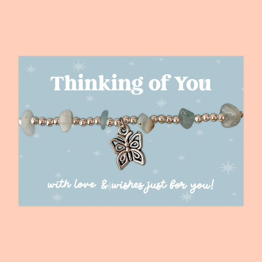 Little Wishes® “Sending Hugs” Clear Quartz Gemstone Chip Bracelet | Silver Ball Beads & Star Charm | Comfort Gift for Tough Times, Support & Thinking of You