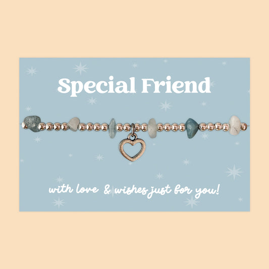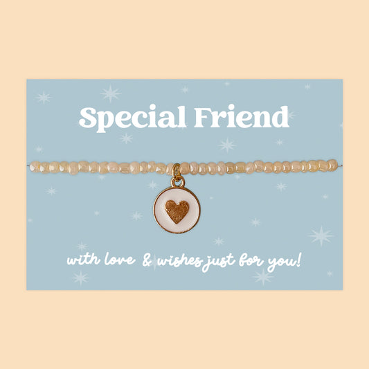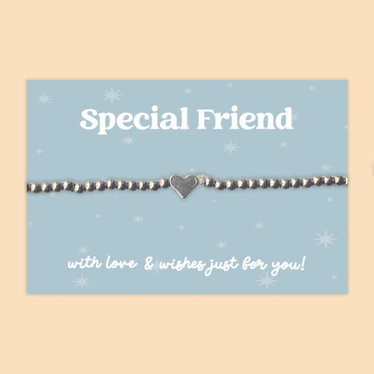 "Best Friend" Heart Charm Stretch Bracelet | Little Wishes Heart Bracelet on Gift Card | Thoughtful Friendship Keepsake Gift