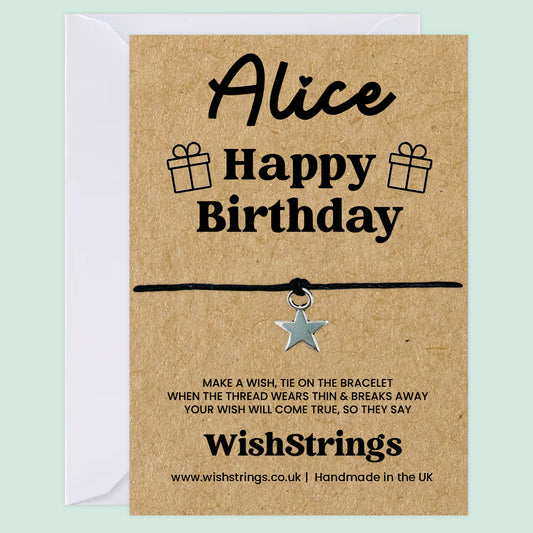 Personalised WishString Bracelet – “Sending You Birthday Wishes” | Custom Name Gift with Charm