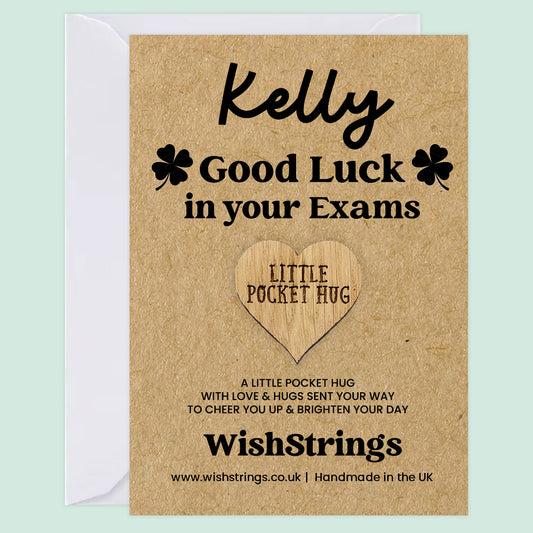 Personalised Pocket Hug – “Good Luck in Your Exams” | Custom Name Token Gift for Students & School Leavers