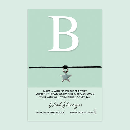 The letter b bracelet from WishStrings is a delicate and meaningful accessory designed to celebrate initials with style and sentiment. This handmade silver bracelet features a beautiful Tibetan silver charm threaded on a 30cm waxed cotton cord with a self-tie design, making it an everyday elegant bracelet perfect for anyone seeking a personalized gift bracelet that combines charm and comfort. Wearing this custom initial bracelet not only adds a touch of alphabet jewelry flair but also serves as a friendship wish bracelet or good luck charm bracelet, offering positivity and motivation for daily life.