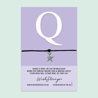 The WishStrings wish bracelet is a charming accessory designed to bring positivity and meaning to everyday wear. This WishStrings wish bracelet features a Tibetan silver charm shaped as the letter Q, strung on a 30cm handmade waxed cotton cord with a self-tie design, making it a personalized initial bracelet perfect for celebrating special connections. Wearing this alphabet letter bracelet helps express individuality while serving as a meaningful keepsake gift that carries good luck and encouragement.