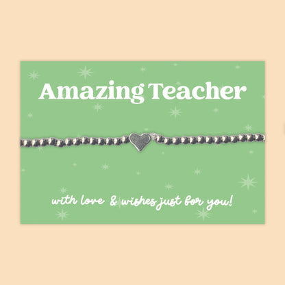 “Amazing Teacher” Heart Charm Bracelet | Thank You Gift for Teacher Appreciation