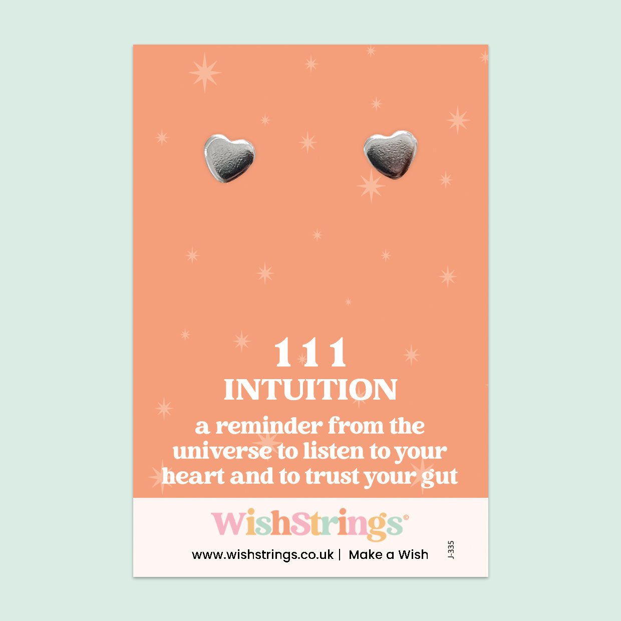 Angel Numbers 111 - Silver Heart Stud Earrings | 304 Stainless - Hypoallergenic