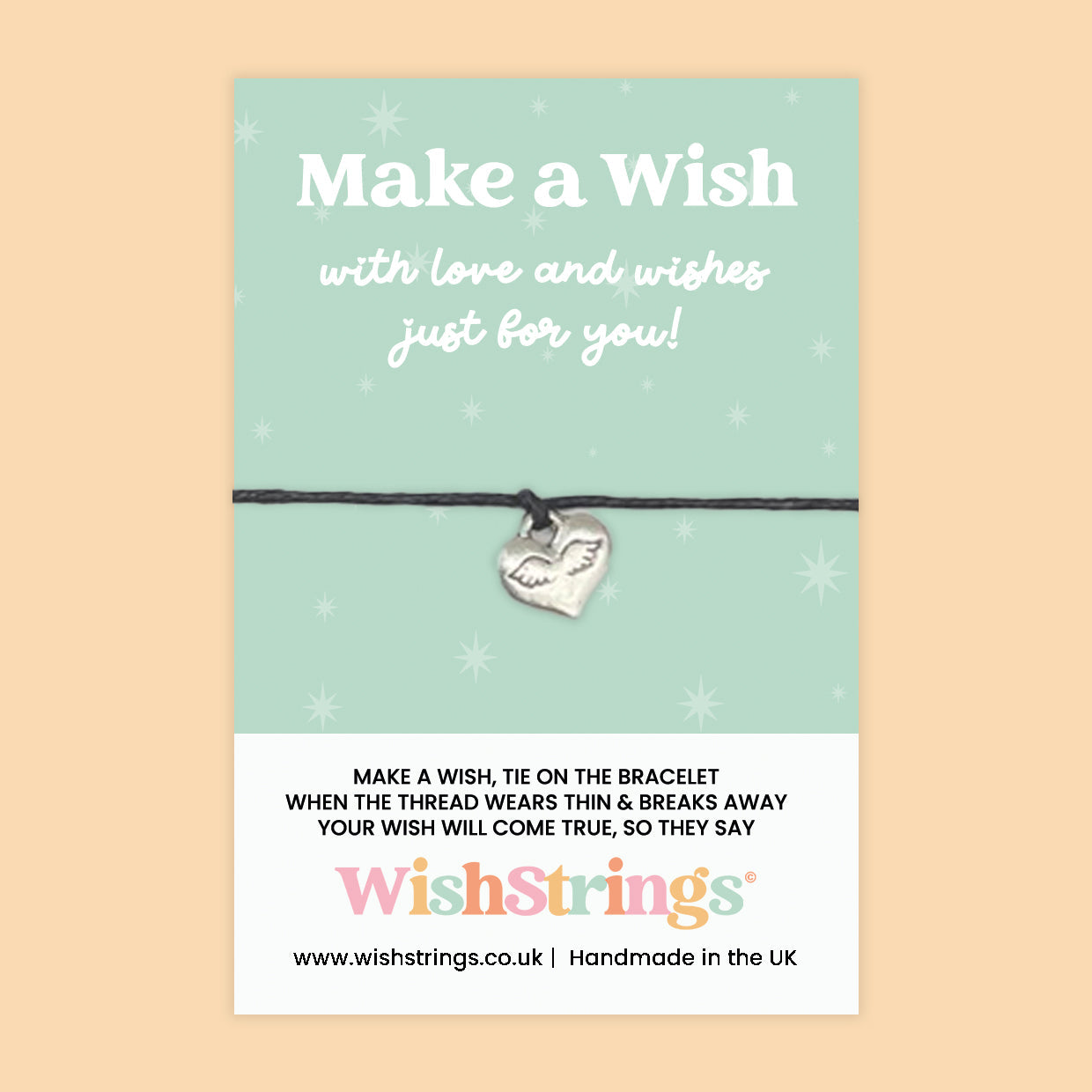Founded in 2012 WishStrings® present to you a delightful range of WishStrings® Wish Bracelets. Each Tibetan Silver charm is hand strung and knotted on 30cm of the finest waxed cotton cord, making a beautiful simple bracelet to tie on as a token of love and friendship.
