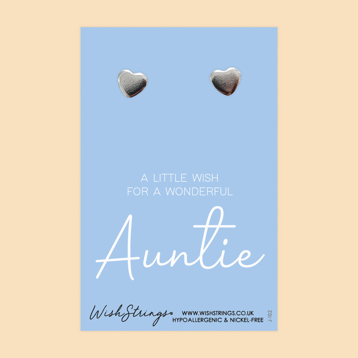 WishStrings® ‘Auntie’ Heart Stud Earrings on Gift Card | Gift from Niece or Nephew | Hypoallergenic & Nickel-Free | Handmade in the UK