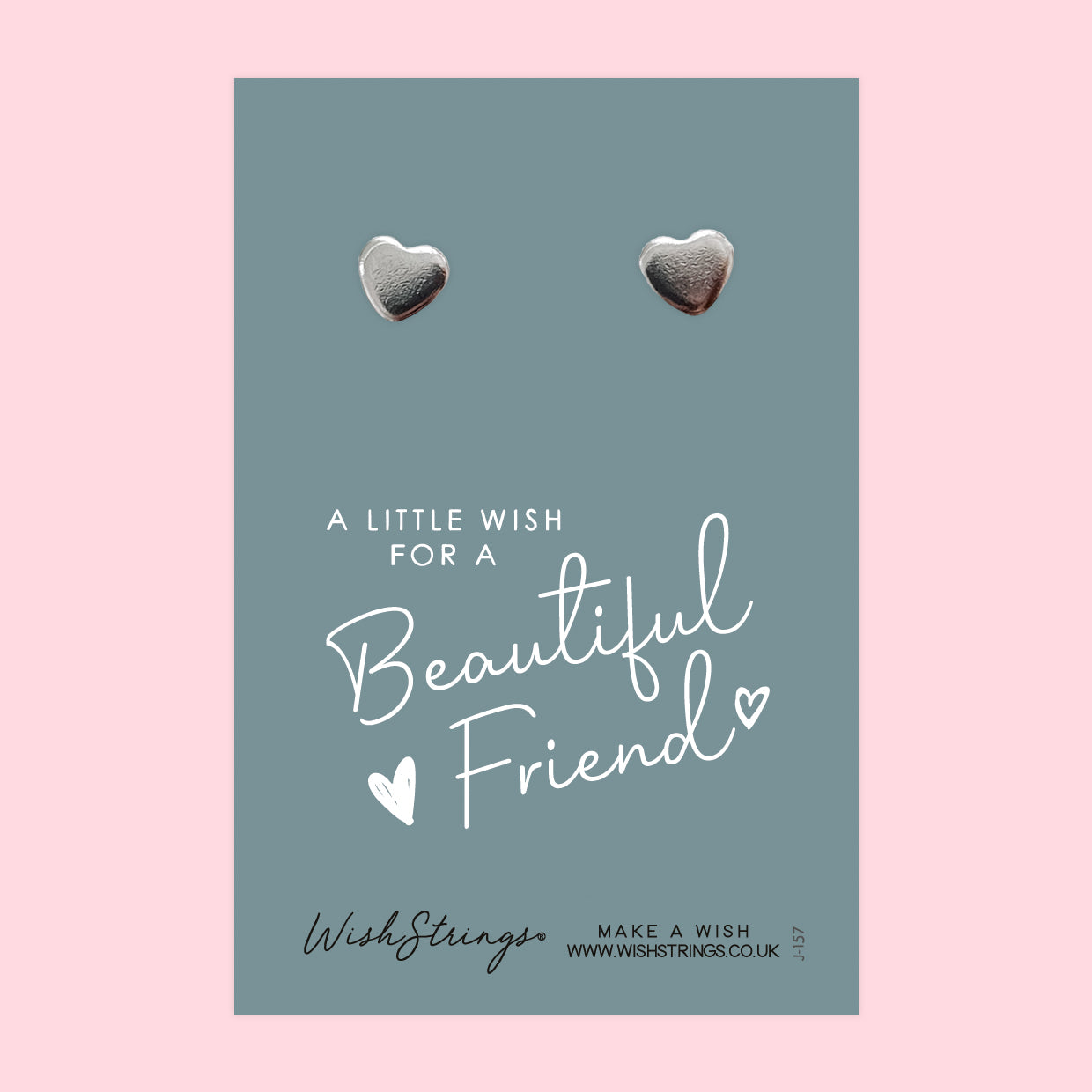 WishStrings ‘A Little Wish for a Beautiful Friend’ Heart Stud Earrings on Gift Card | Thoughtful Friendship Gift | Hypoallergenic & Nickel-Free | Handmade in the UK