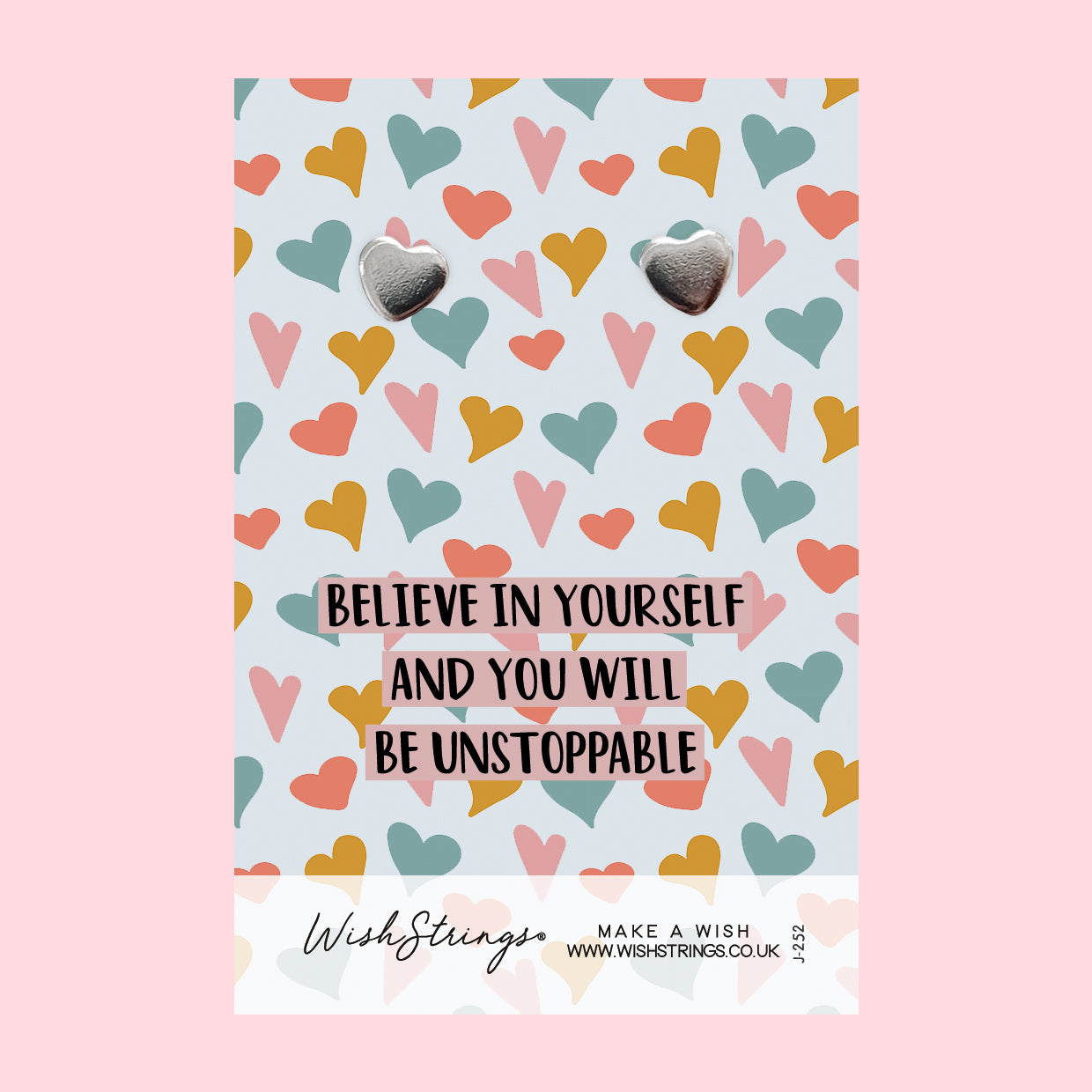 Believe in Yourself - Silver Heart Stud Earrings | 304 Stainless - Hypoallergenic