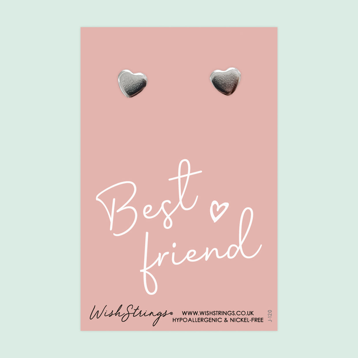 WishStrings ‘Best Friend’ Heart Stud Earrings on Gift Card | Friendship Gift for Her | Hypoallergenic & Nickel-Free | Handmade in the UK
