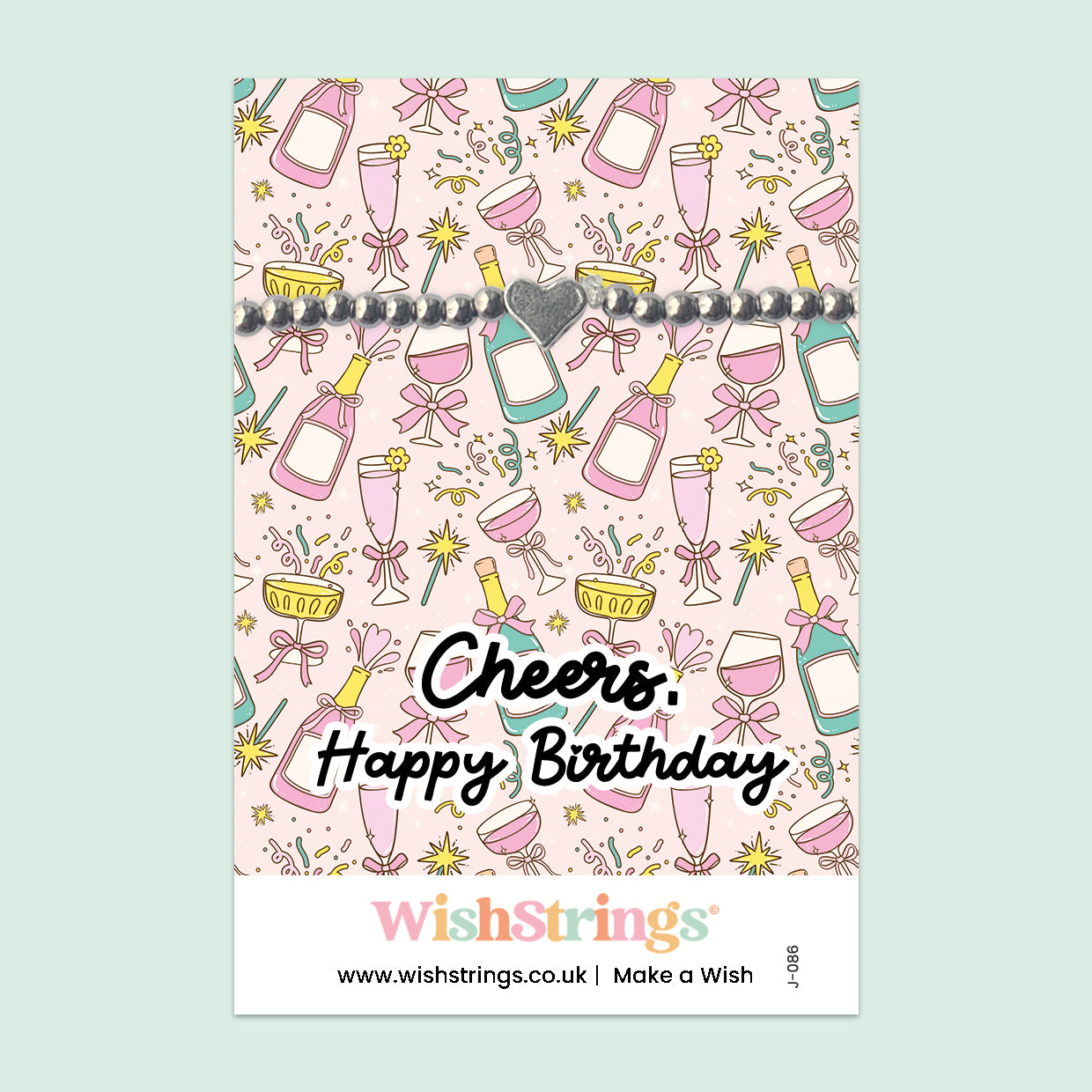 Cheers, Happy Birthday - Heart Stretch Bracelet