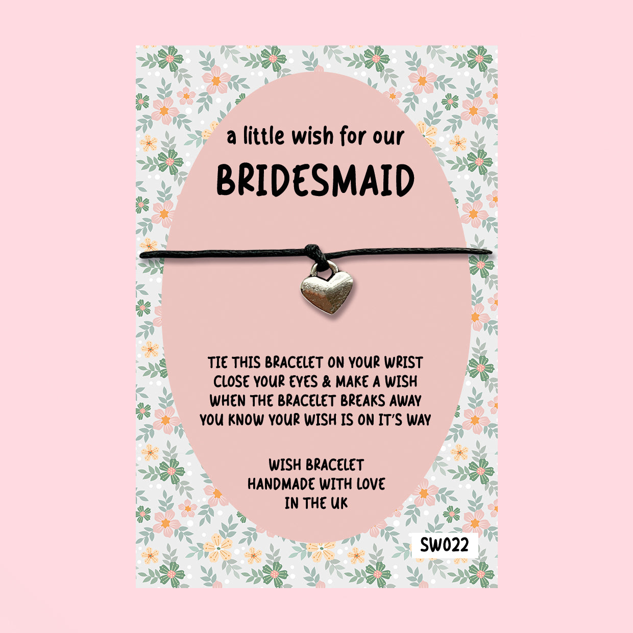 WishStrings ‘Bridesmaid’ Wish Bracelet on Gift Card | Wedding Party Keepsake | Thank You Gift for Bridesmaids | Sentimental Wedding Jewellery