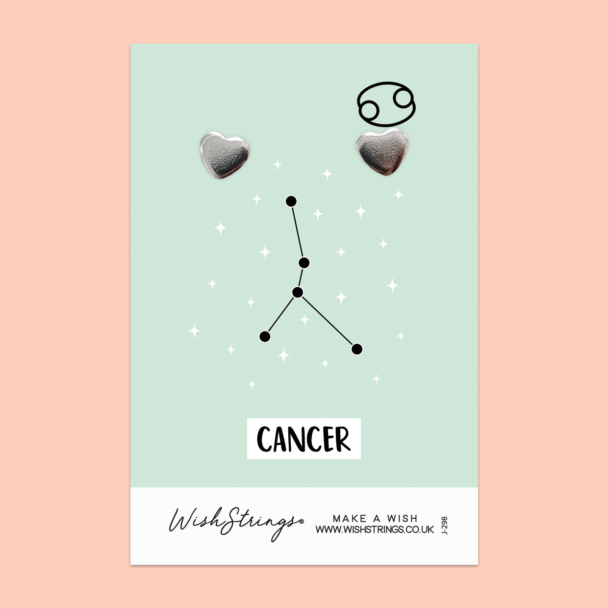 Cancer, Star Sign Horoscope - Silver Heart Stud Earrings | 304 Stainless - Hypoallergenic