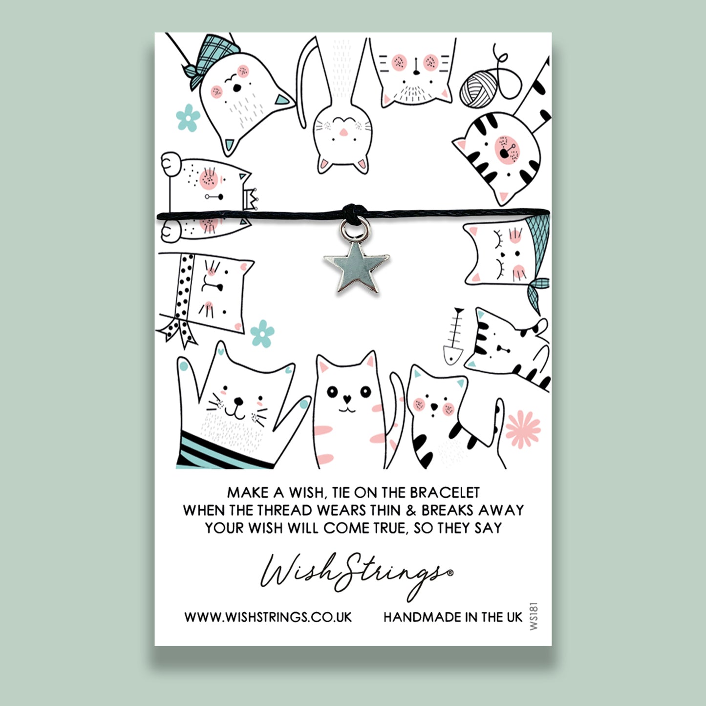 WishStrings ‘Cat Pattern’ Wish Bracelet | Thoughtful Gift for Cat Lovers & Cat Ladies | Meaningful Keepsake for Feline Enthusiasts