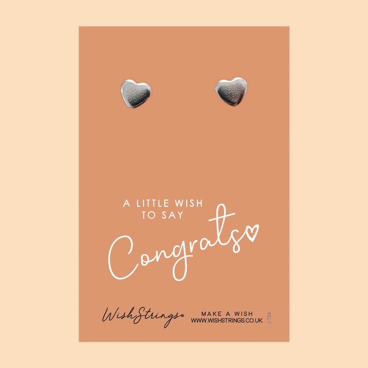 WishStrings “Wishing You a Speedy Recovery” Heart Stud Earrings on Gift Card | Get Well Soon Gift | Hypoallergenic Jewellery | Handmade in the UK