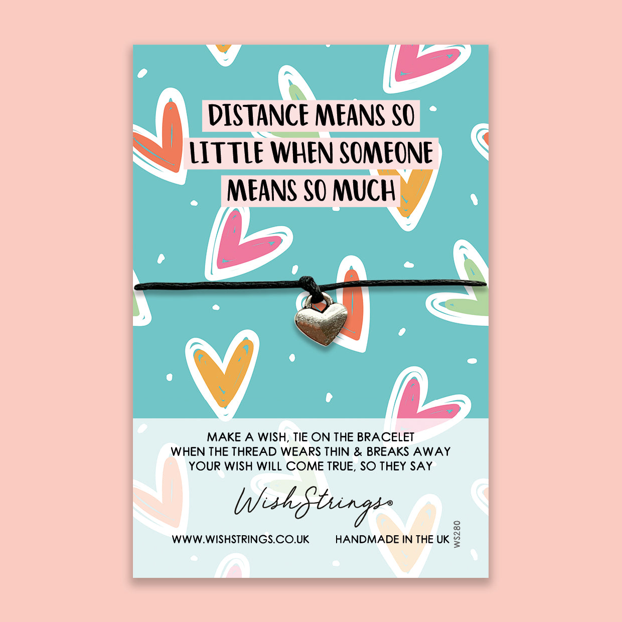 Why choose this meaningful keepsake gift? Each WishStrings wish bracelet serves as a simple love token that reminds recipients they are always close in heart despite physical separation. The “Distance Means So Little” quote on the charm encourages support and encouragement during challenging times. Handmade by skilled artisans in the UK, these bracelets combine heartfelt sentiment with quality materials.