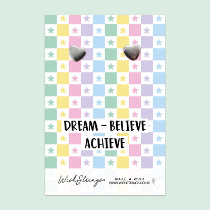Dream, Believe, Achieve - Silver Heart Stud Earrings | 304 Stainless - Hypoallergenic