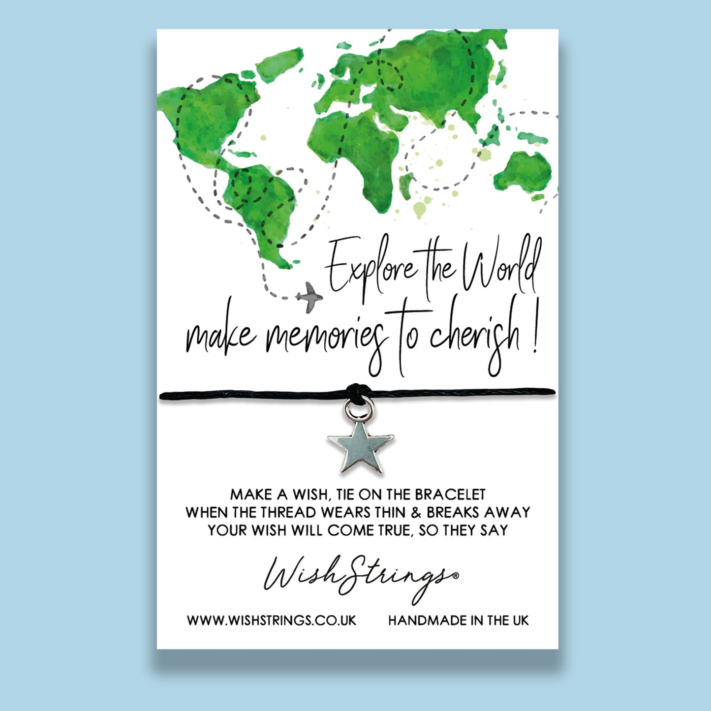 WishStrings ‘Explore the World, Make Memories’ Wish Bracelet | Thoughtful Gift for Travelers | Meaningful Keepsake for Adventure & Exploration