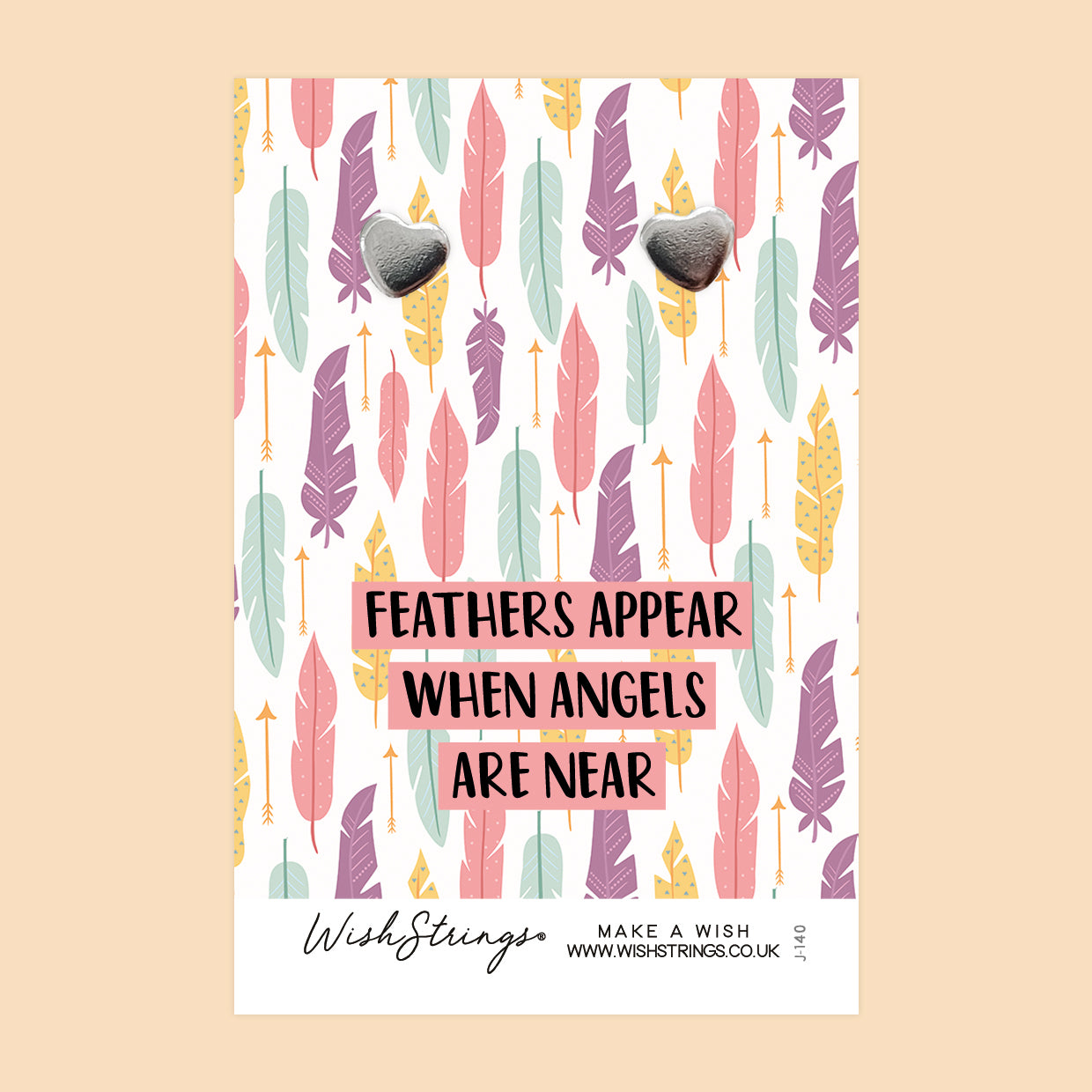WishStrings ‘Feathers Appear When Angels Are Near’ Heart Stud Earrings on Gift Card | Sympathy & Remembrance Gift | Hypoallergenic & Nickel-Free | Handmade in the UK