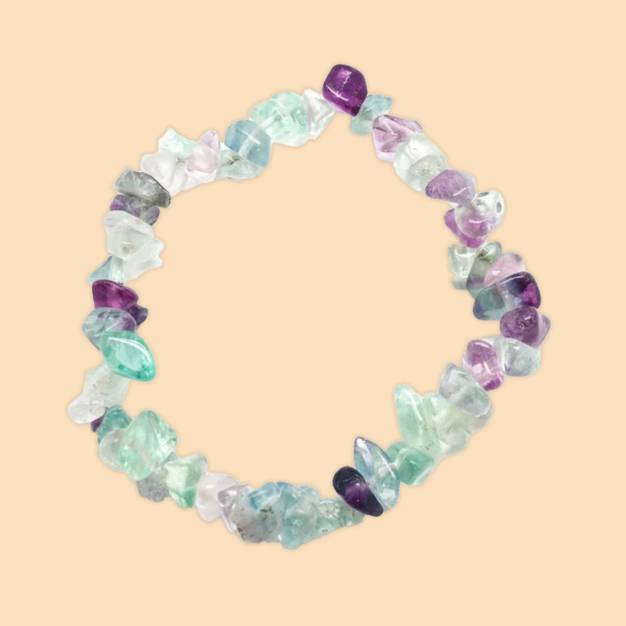 Each bracelet is handmade with genuine Fluorite gemstone chips, carefully strung on a high-quality elastic cord for a comfortable and adjustable fit. This crystal is ideal for personal growth, mental clarity, and aligning your energy with positivity and purpose.