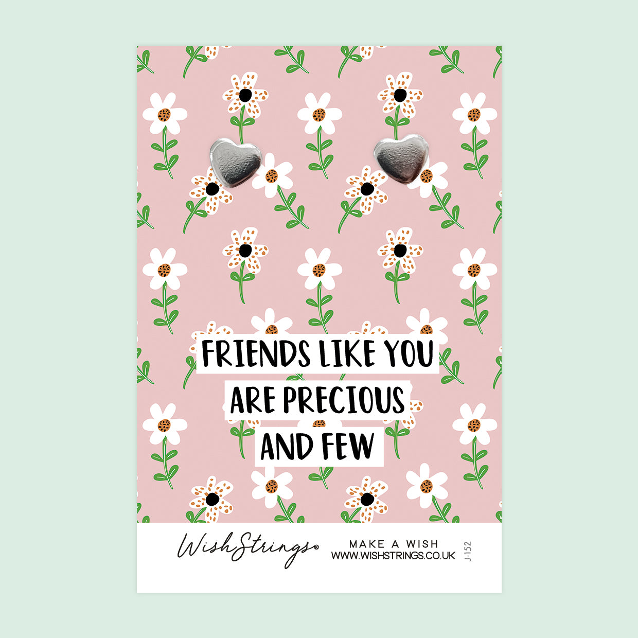 WishStrings ‘Friends Like You Are Precious and Few’ Heart Stud Earrings on Gift Card | Thoughtful Gift for Best Friend | Hypoallergenic & Nickel-Free | Handmade in the UK