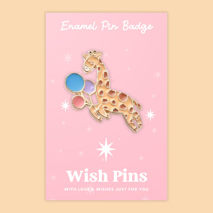 Giraffe with Balloons Wish Pin Badge by WishStrings – Enamel Pin on Illustrated Gift Card