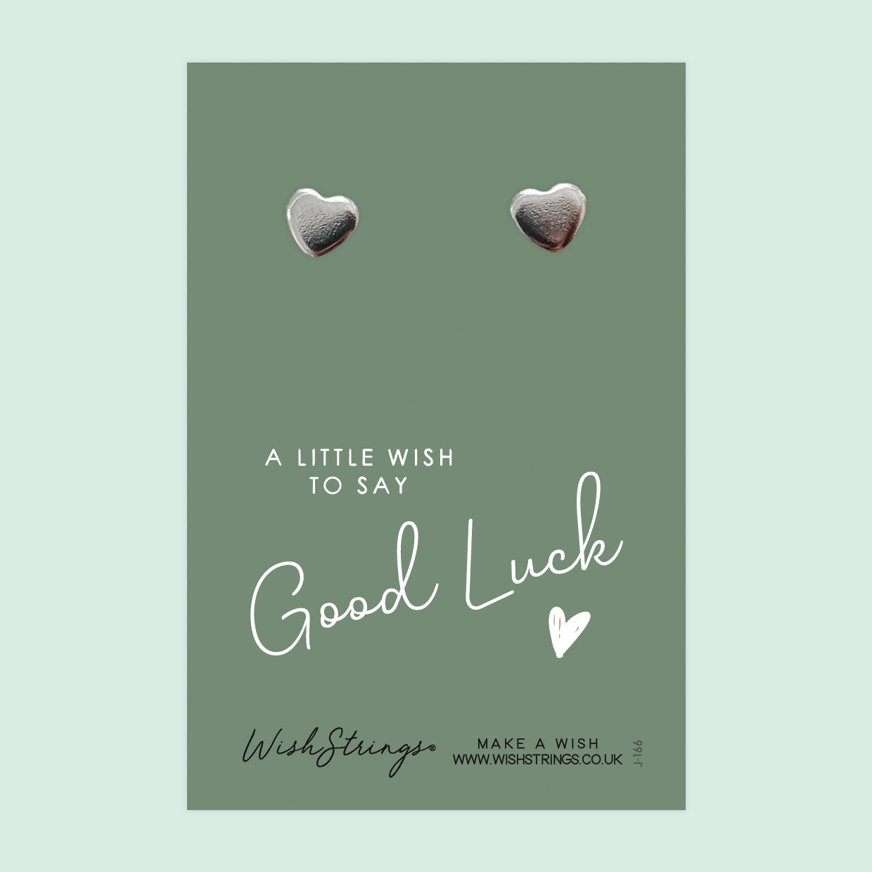 WishStrings ‘A Little Wish to Say Good Luck’ Heart Stud Earrings on Gift Card | Encouragement Gift | Hypoallergenic & Nickel-Free | Handmade in the UK