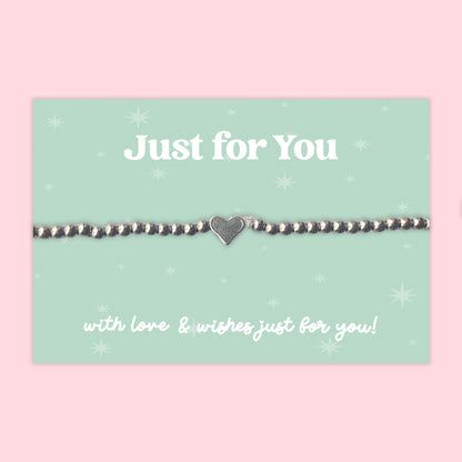 Crafted with polished stainless steel beads, this elegant bracelet is both stylish and sentimental. It is beautifully presented on a “Just for You” message card, making it the perfect gift for birthdays, special occasions, or simply to remind someone they are loved and appreciated.