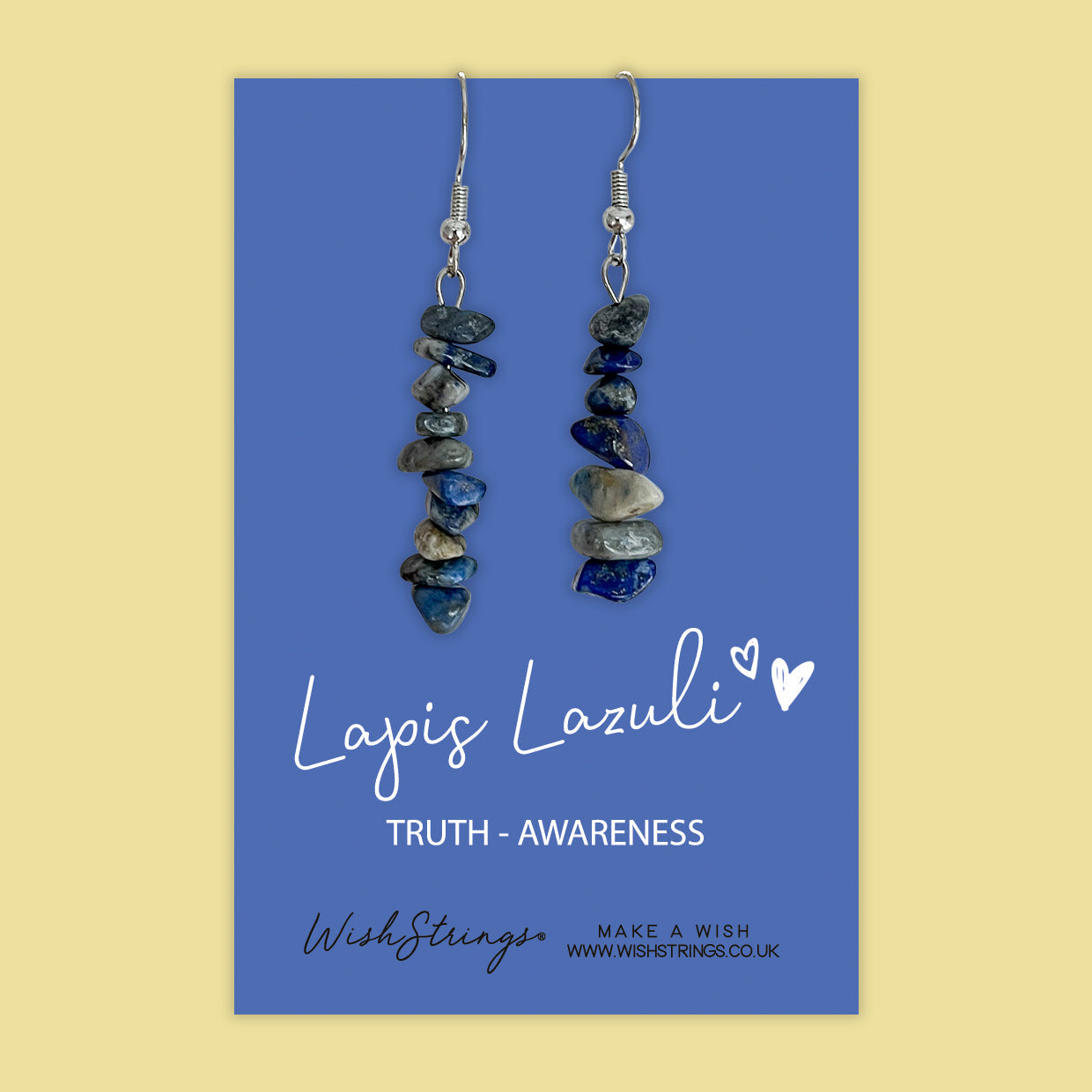 Lapis Lazuli - Gemstone Chip Dangle Earrings