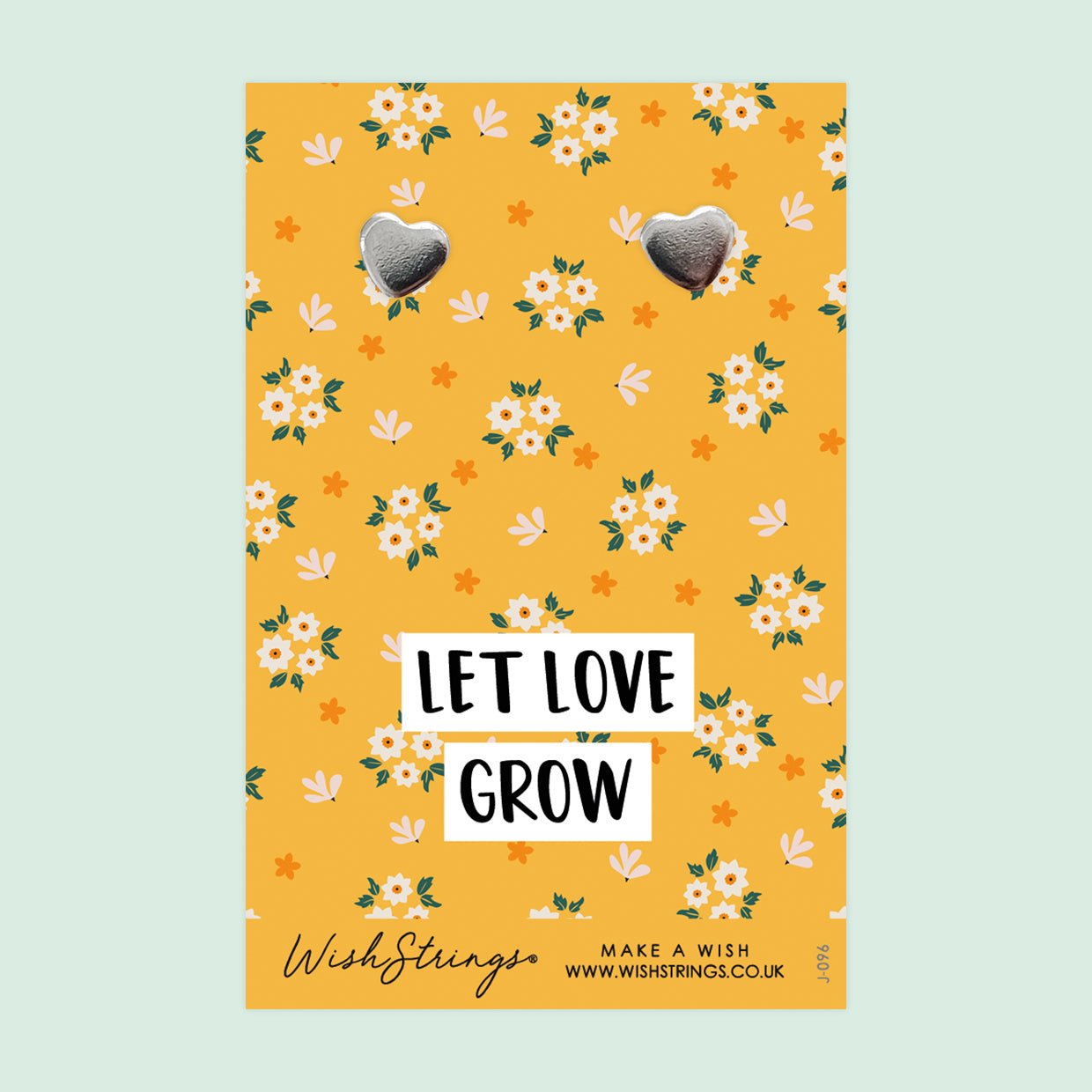 WishStrings® ‘Let Love Grow’ Heart Stud Earrings on Gift Card | Gift for Her | Hypoallergenic & Nickel-Free | Handmade in the UK