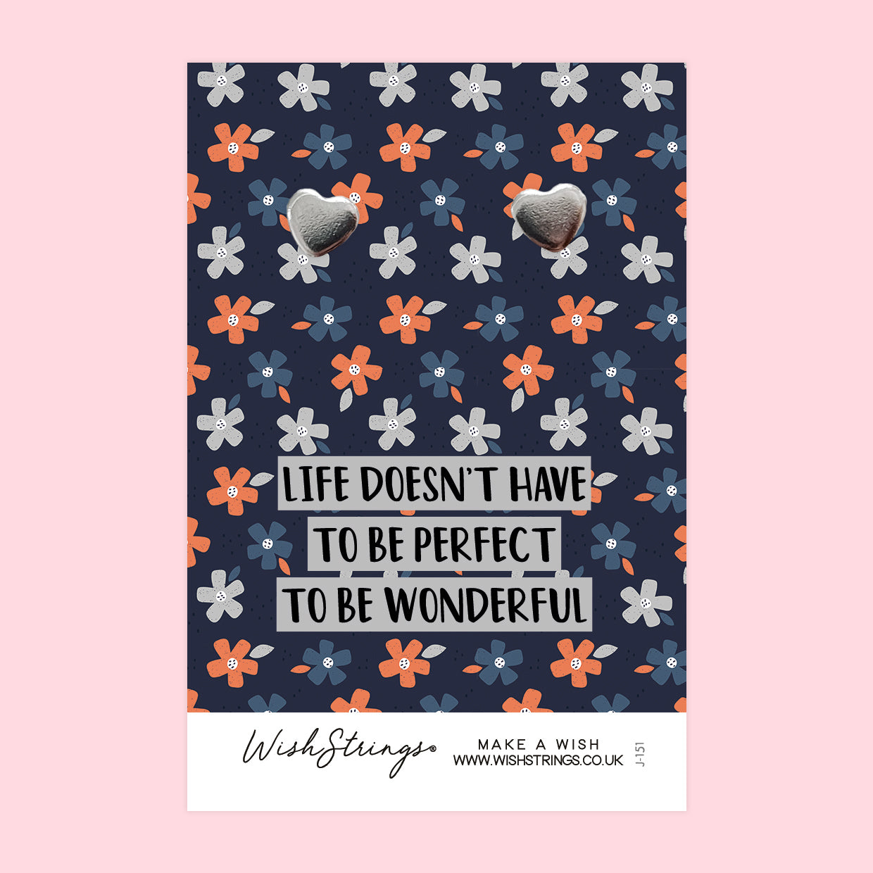 WishStrings ‘Life Doesn’t Have to Be Perfect to Be Wonderful’ Heart Stud Earrings on Gift Card | Positivity & Mindfulness Gift | Hypoallergenic & Nickel-Free | Handmade in the UK