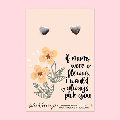 WishStrings® ‘If Mums Were Flowers, I’d Always Pick You’ Heart Stud Earrings on Gift Card | Mother’s Day or Birthday Gift | Hypoallergenic & Nickel-Free | Handmade in the UK