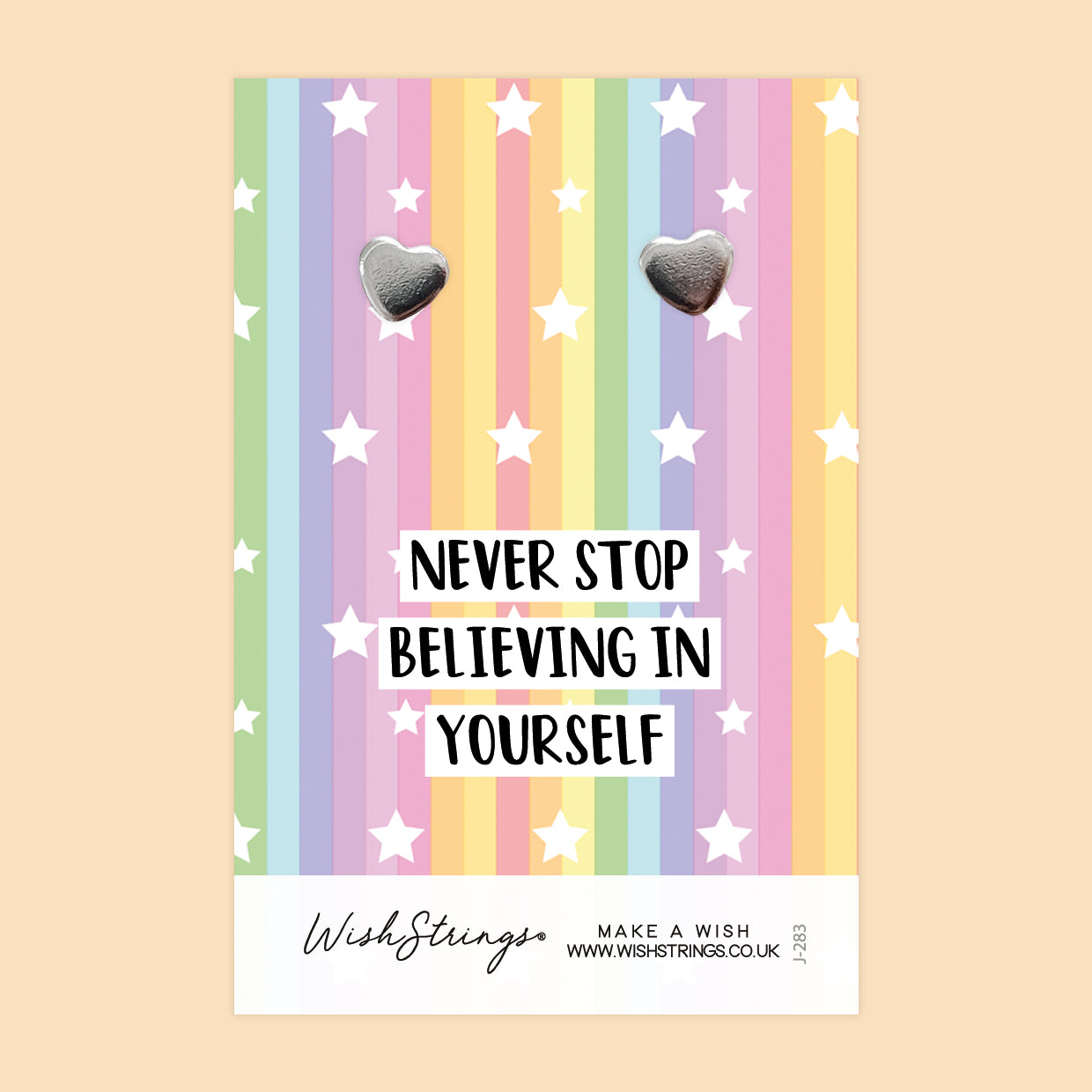 Believing in Yourself - Silver Heart Stud Earrings | 304 Stainless - Hypoallergenic