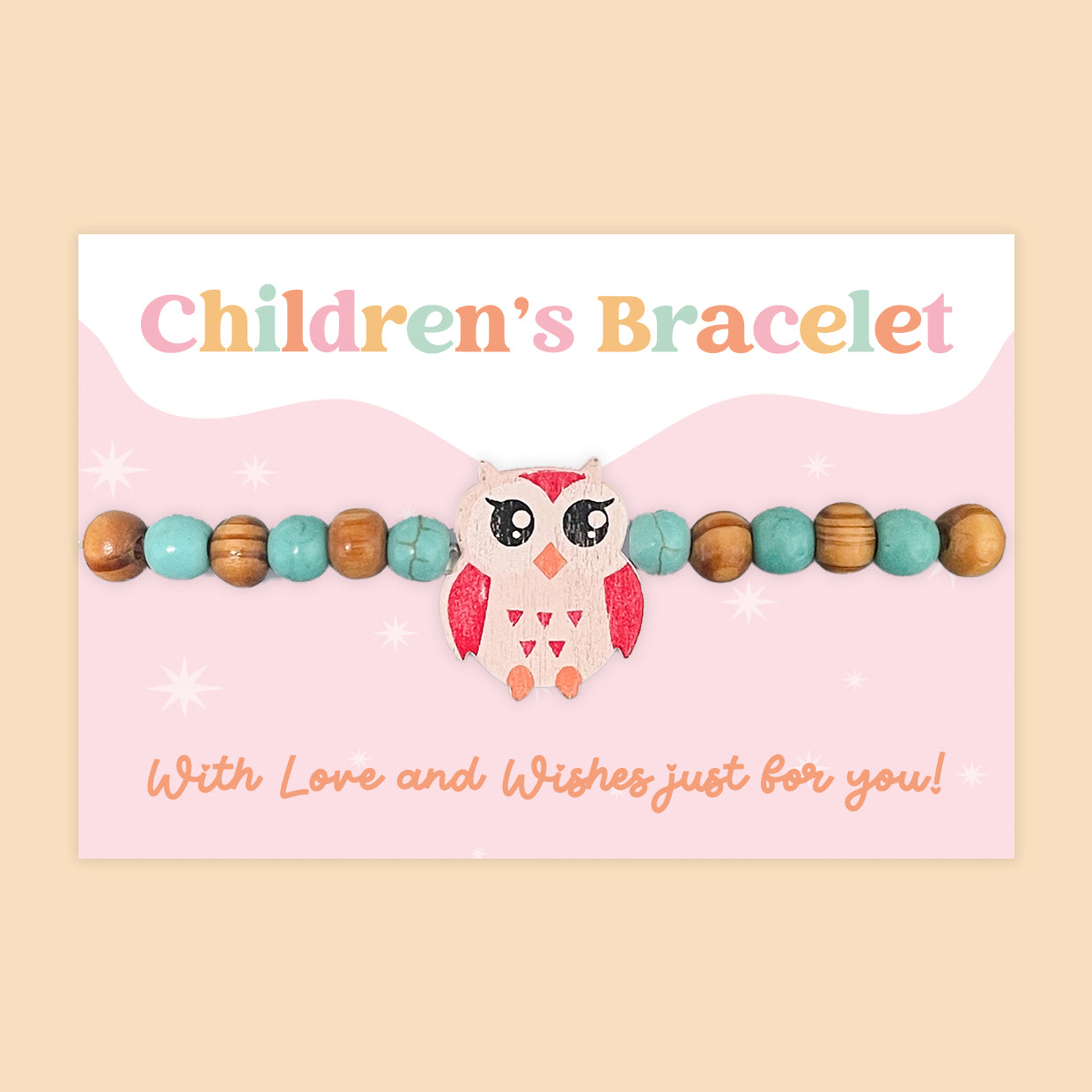 Cute Owl Charm WishStrings Children’s Beaded Stretch Bracelet on Illustrated Gift Card | Positivity & Friendship Gift