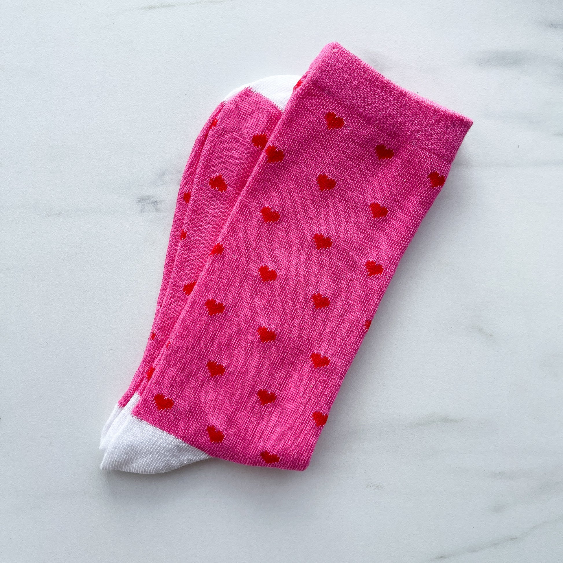 Pink Heart Socks, Adult Size 3-7