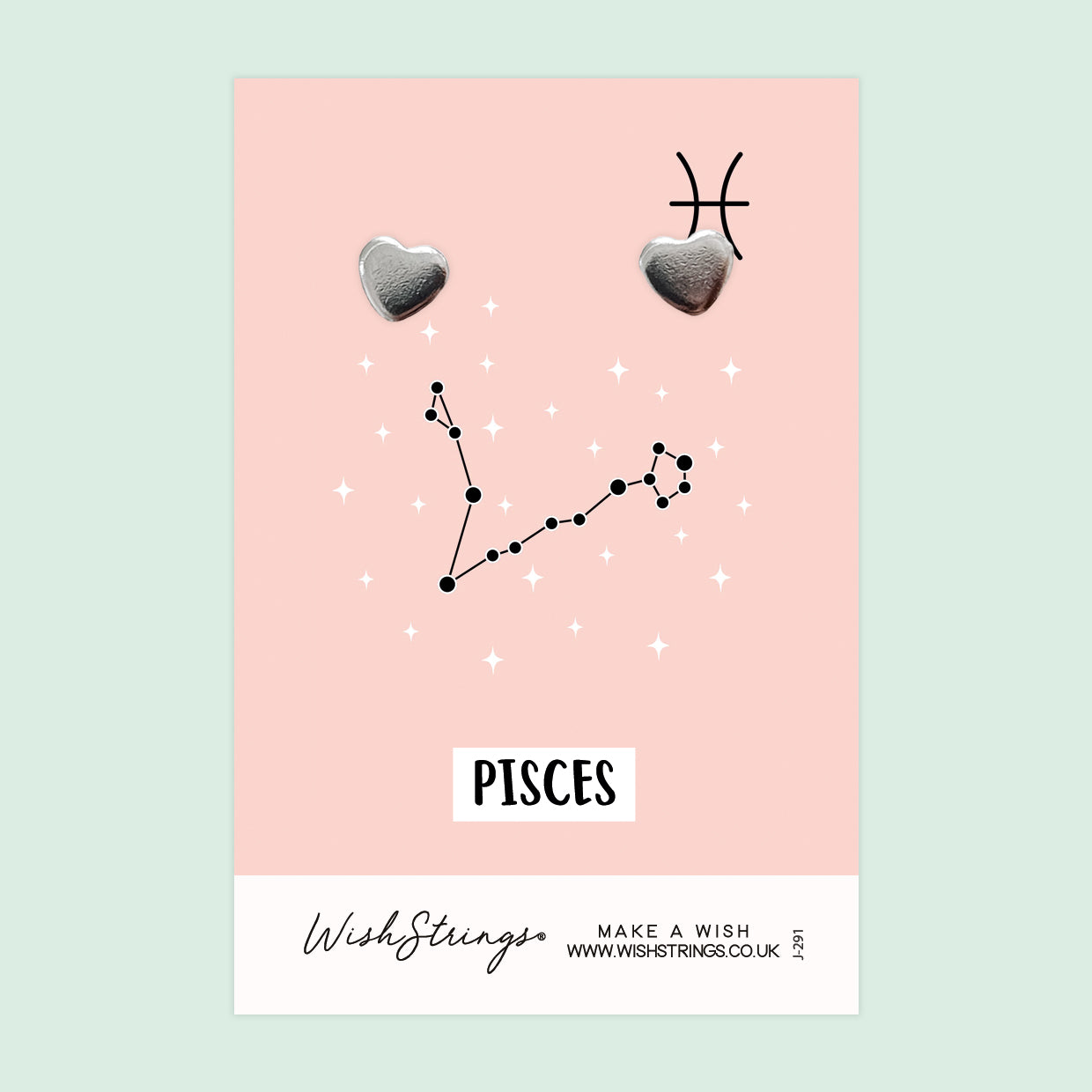 Pisces, Star Sign Horoscope - Silver Heart Stud Earrings | 304 Stainless - Hypoallergenic