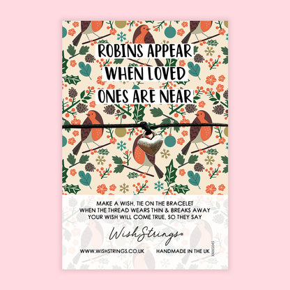 WishStrings Wish Bracelet – Robins Appear When Loved Ones Are Near | Robin Memorial Gift | Heart Charm Bracelet | Christmas Remembrance Keepsake Gift