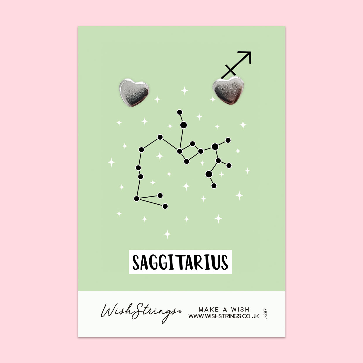 Sagittarius, Star Sign Horoscope - Silver Heart Stud Earrings | 304 Stainless - Hypoallergenic