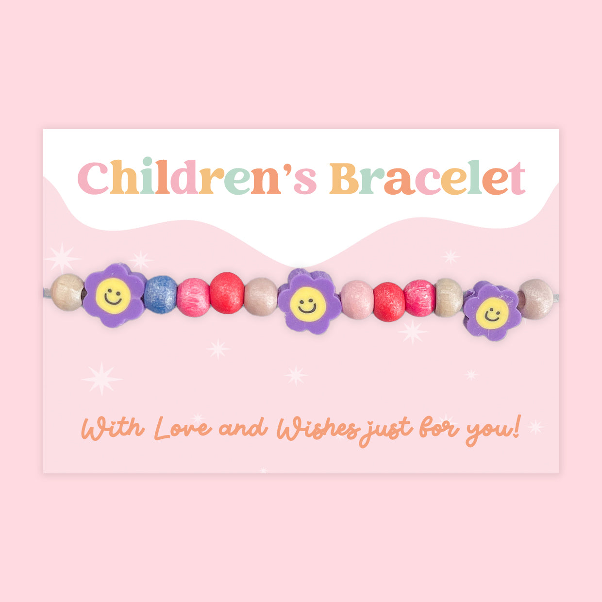 Smiling Flower Charm WishStrings Children’s Beaded Stretch Bracelet on Illustrated Gift Card | Positivity & Friendship Gift