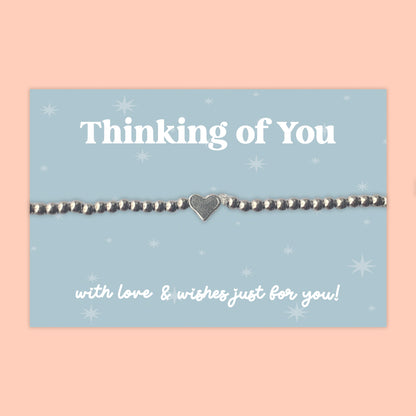 This elegant bracelet is crafted with polished stainless steel beads and presented on a beautifully designed “Thinking of You” gift card, making it a thoughtful keepsake for anyone in need of encouragement, sympathy, or a reminder of your love.