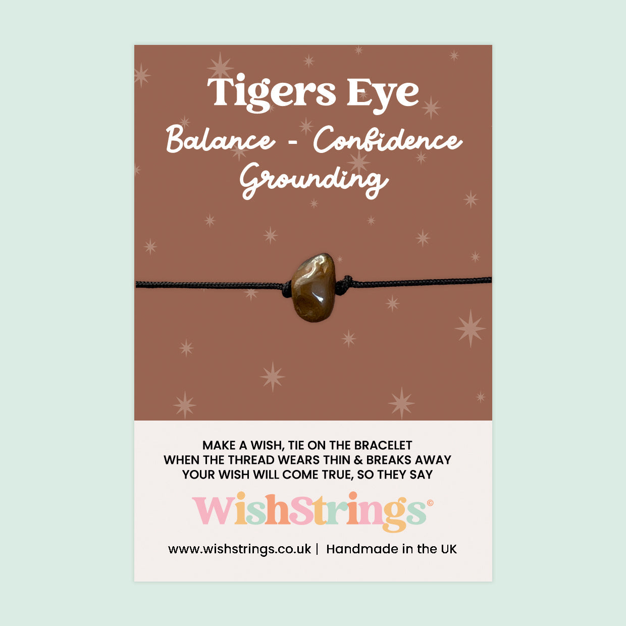 • ♥ Tiger’s Eye Gemstone: This WishStrings bracelet features a striking Tiger’s Eye chip bead, known as the “Stone of Courage.”