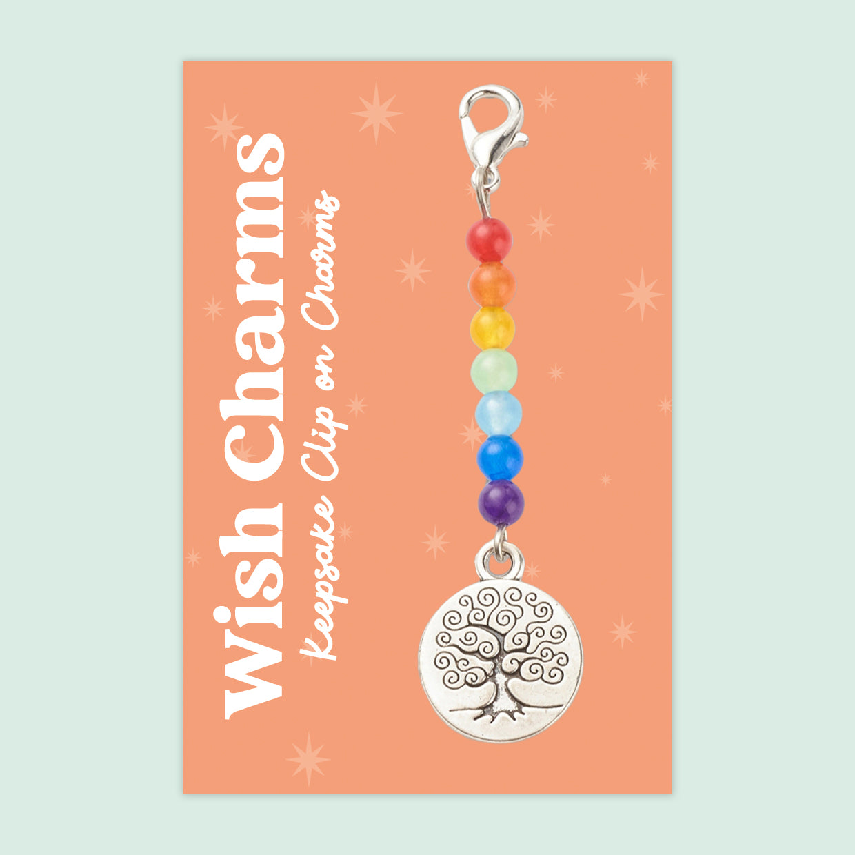 Tree of Life, Chakra - Wish Charms - Keepsake Clip on Charm with Gemstones