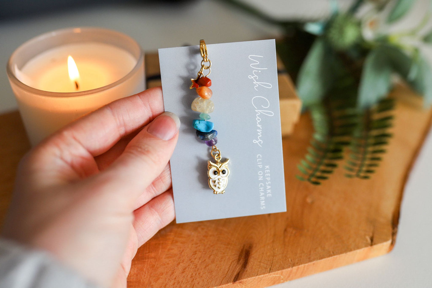 Elevate your everyday accessories with our enchanting collection of Wish Charms, meticulously crafted to add a touch of elegance to your belongings. These delightful keepsake clip-on charms are designed to accompany you wherever you go, featuring a mesmerizing combination of gemstones and Tibetan silver charms.
