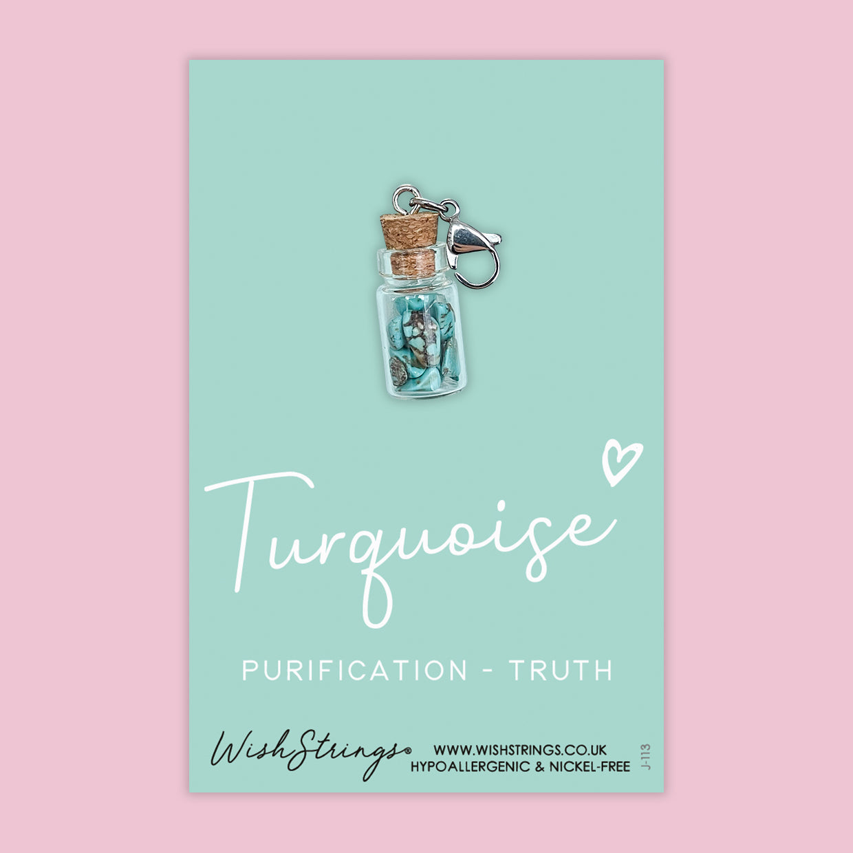 Turquoise Wishing Jar – Clip-On Keepsake | Gemstone Gift for Truth, Purification & Good Fortune | Crystal Jar Charm for Calm, Healing & Protection
