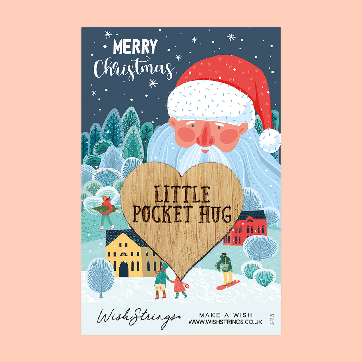 WishStrings Pocket Hug Keepsake Token | "Merry Christmas" | Winter Wonderland & Santa Claus