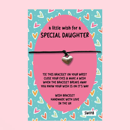WishStrings ‘Special Daughter’ Wish Bracelet on Gift Card | Thoughtful Gift from Mum or Dad | Keepsake Bracelet for Birthday, Christmas or Just Because