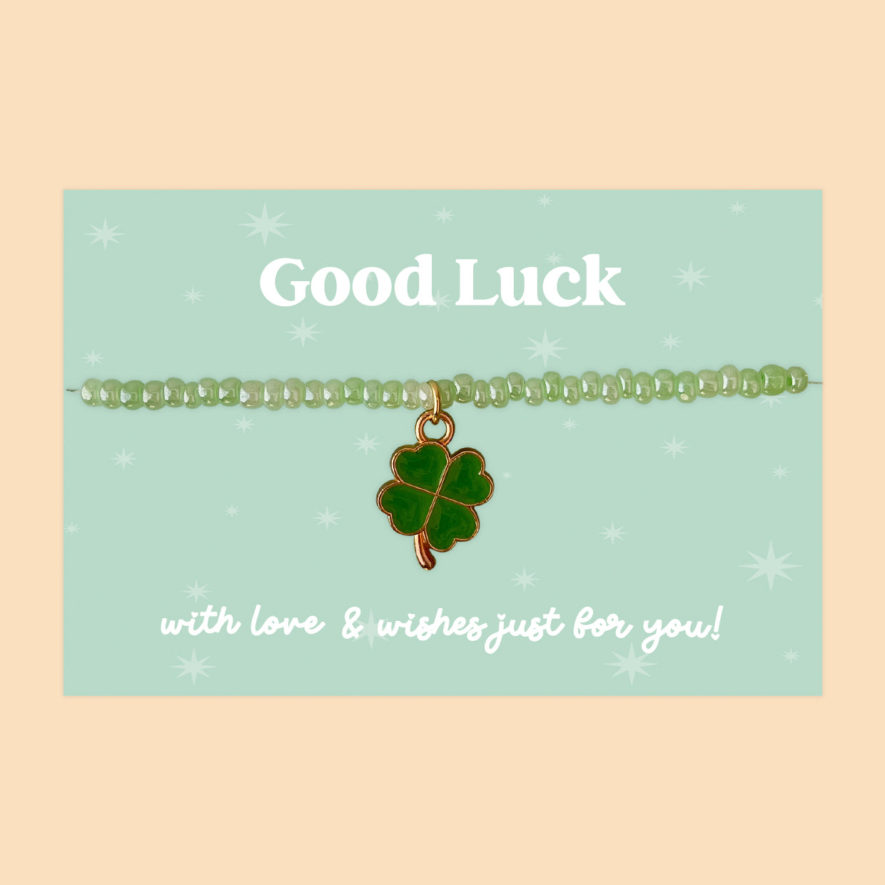 Little Wishes® “Good Luck” Green Seed Bead Bracelet | Lucky Clover Enamel Charm | Thoughtful Gift for Exams, New Job, New Beginnings & Positive Vibes